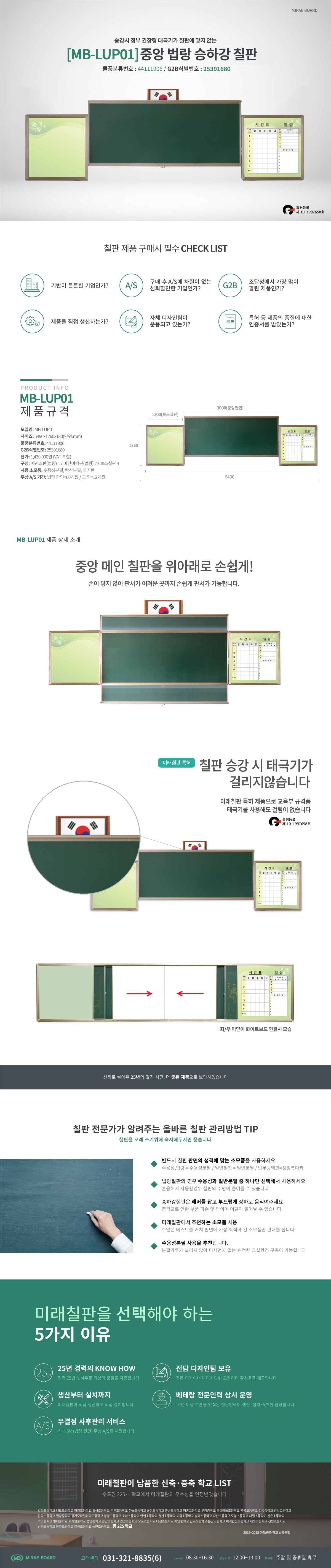 [MB-LUP01] 중앙법랑승하강칠판